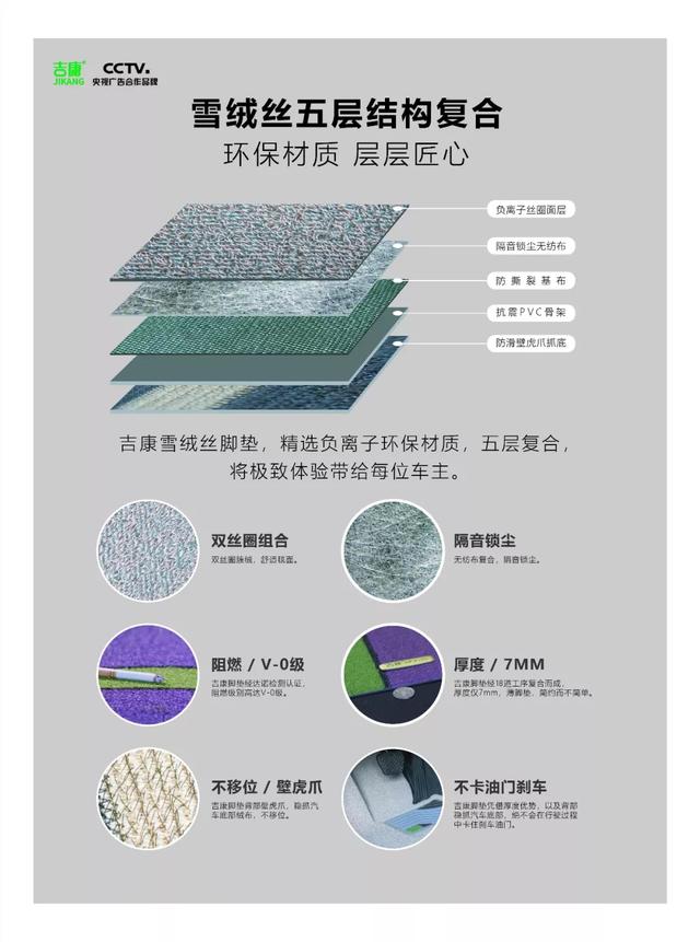 在生产方面,所有吉康产品均严格按照国际标准设计生产,按照以人为本、依车型设计、尺寸密合、一体成型构造、质量至上、防护更周全的生产原则;在原材料方面,采用国际的环保配方原料,同时加入负离子原料,不仅不会出现异味有毒气体的排放,有良好的环保阻燃性;独特的底部和网状设计,提升踏感舒适度。同时,还可以有效清除空气中的三态污染物(物理颗粒物、化学气体污染物以及微生物污染物),给人们提供一个清新洁净的呼吸环境。