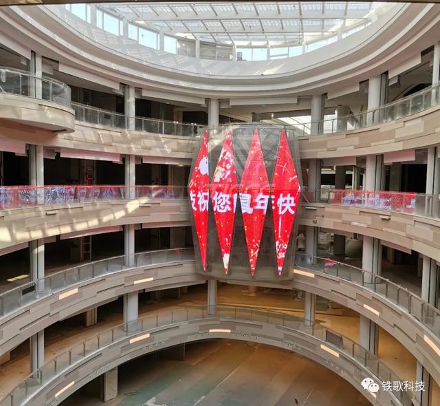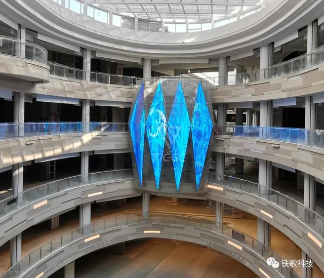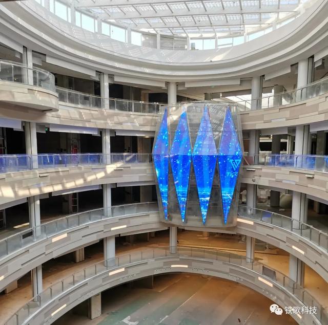 钻石屏位于主中庭,菱形设计,如同晶莹剔透的钻石,加之中庭采光足,光线强,对屏体有着严苛的要求,而铁歌P20贴膜屏,具有高亮度、高通透、可裁剪弯曲、散热性强等优势,全方面的满足顾客高标准要求。屏体融入钻石造型,隐形显示,独特的造型加之炫酷的显示,将为商场带来巨大的流量,促进消费,同时也展现龙湖天街的匠心所在。