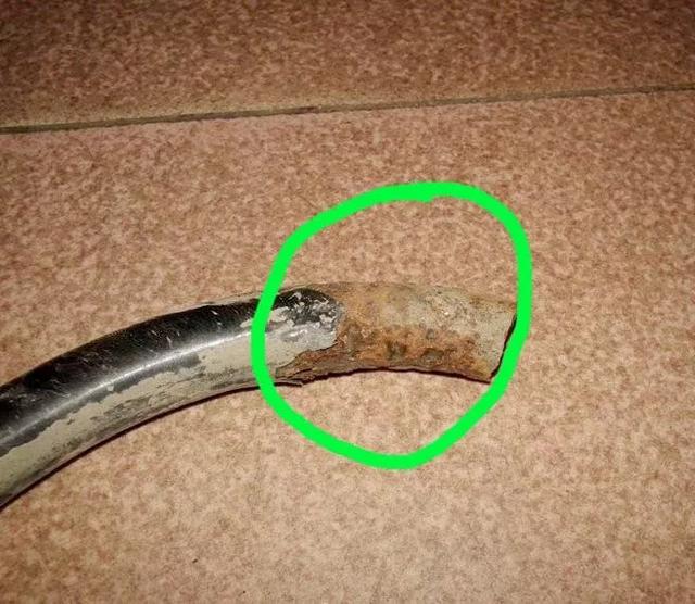 上图可以看出来断裂部分已经生锈,该车弹簧末端是用胶套包裹的,如果胶套内存水,时间长了会生锈,这可能是造成断裂的原因。