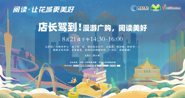 “直播730”系列讲座:羊城书展期间,活动当晚7:30,广州购书中心一楼大堂将华丽变身直播间,大冰、敬一丹、苑子文&苑子豪、涂子沛等嘉宾将亲临现场,开麦直播,与读者云交流。在线读者可通过“花城+”APP参与远程抢券和“0元购”活动,现场观众则可边看直播、边现场扫码购书。