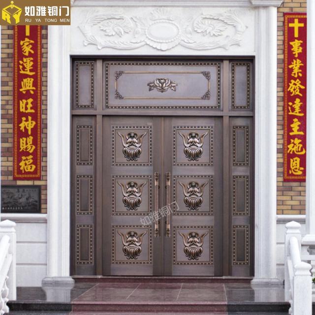 公司生产的各系列豪华铜门,选用高纯度专用铜门材料,表面处理采用优质材料与先进工艺,使其着色自然、光亮、在豪华气质之上更添光彩。