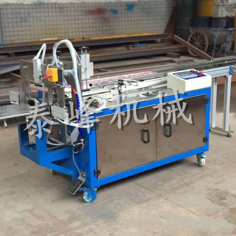 1.主要用于抽取式面巾纸及餐巾纸的半自动包装机,纸巾经输送带输送压实后人工套袋后的自动装袋,封口,切废料。